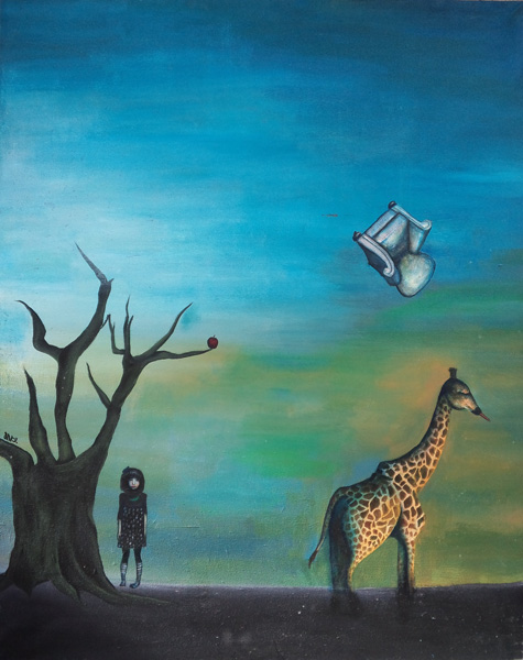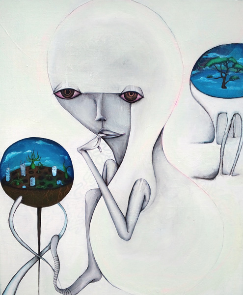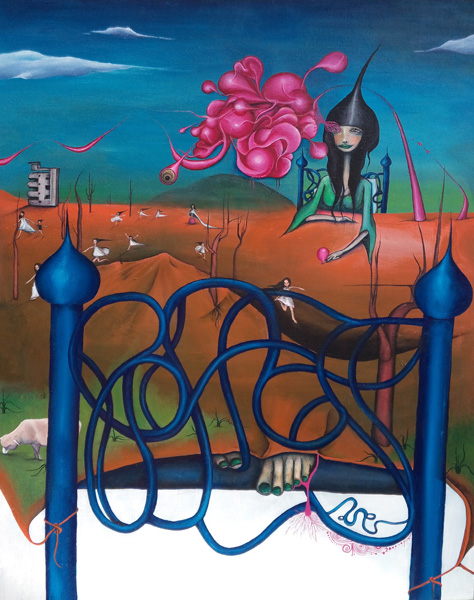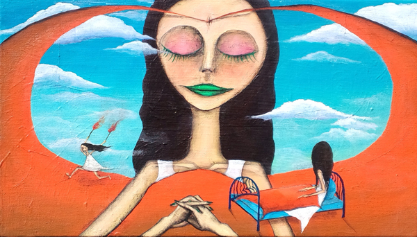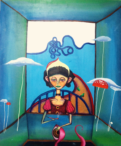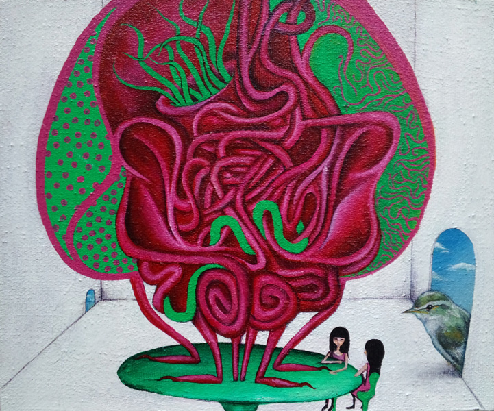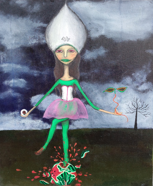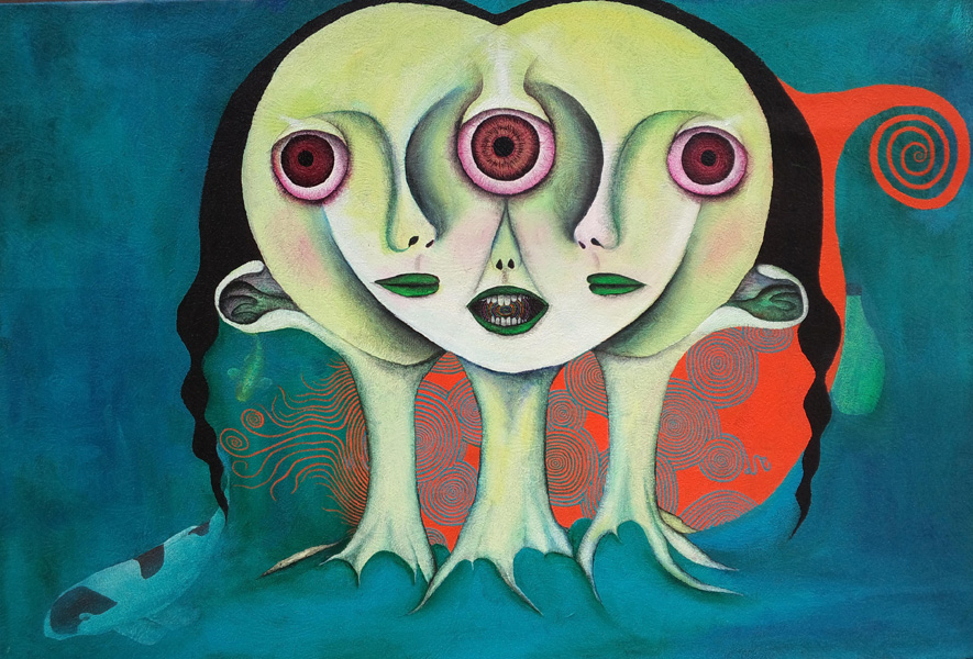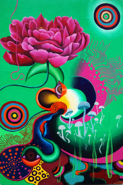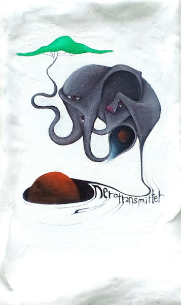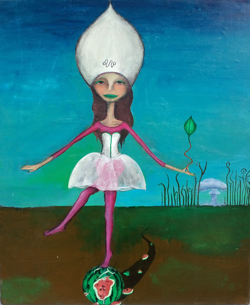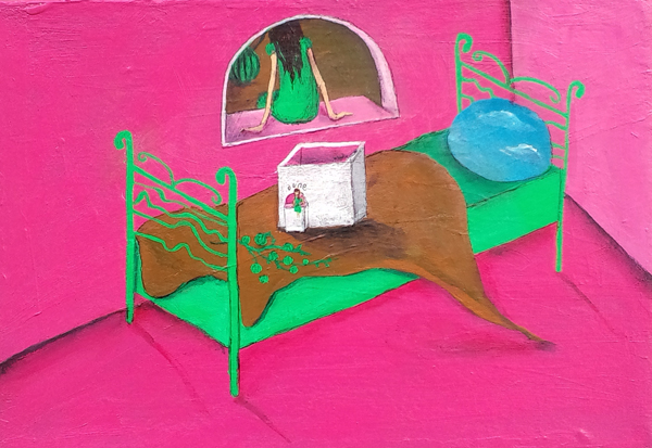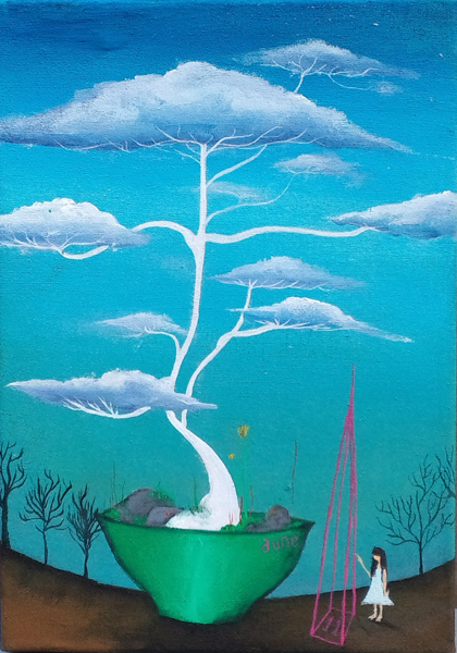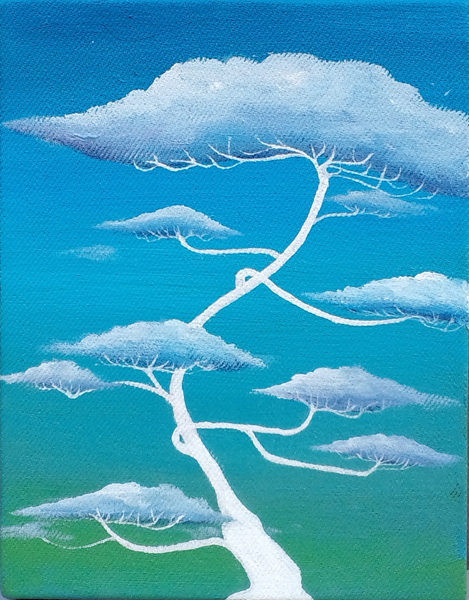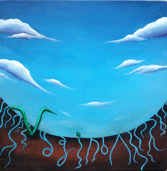 画材:アクリル絵の具 (額素材:三角コーンの下の部分)